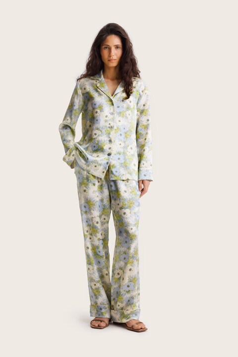 Шёлковый халат-кимоно короткий серебристо-голубой