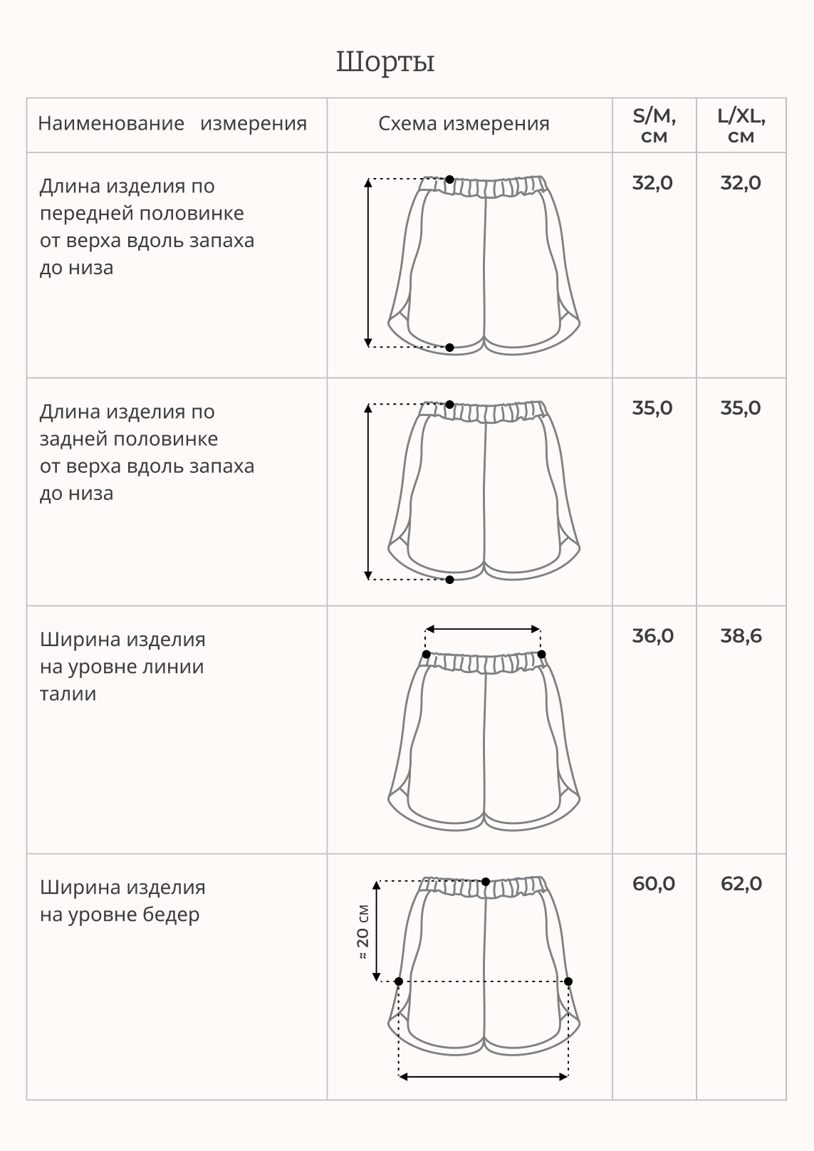 Таблица размеров одежды
