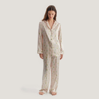 Пижама классическая с кантом цветы и линии: розовый