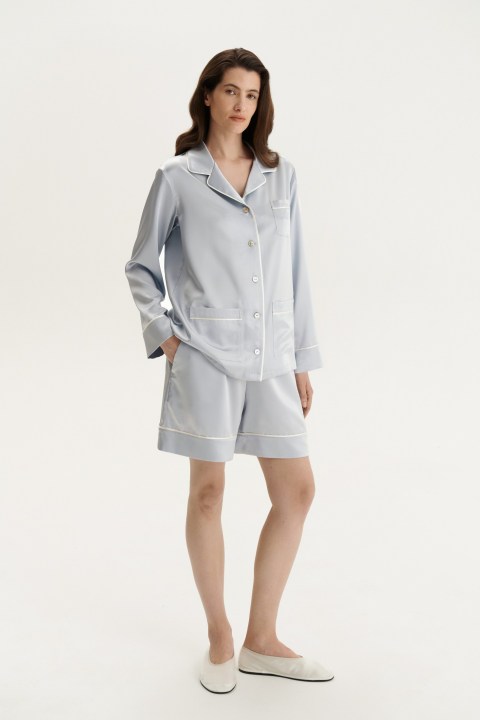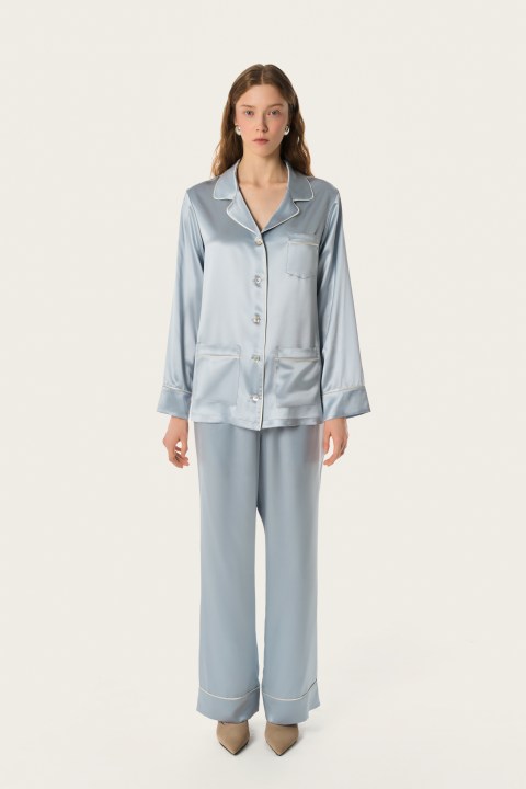 Классическая пижама с карманами Coco серебристо-голубой